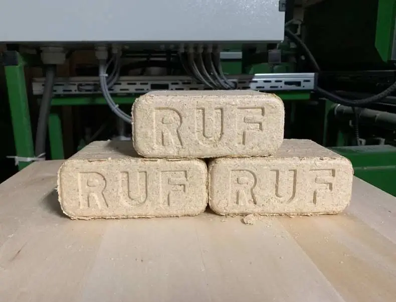 Топливные брикеты РУФ, произведены на высокотехнологичном оборудовании. Соответствуют международному стандарту качества DIN51731. Производятся из измельченной древесины до фракции «опилки».